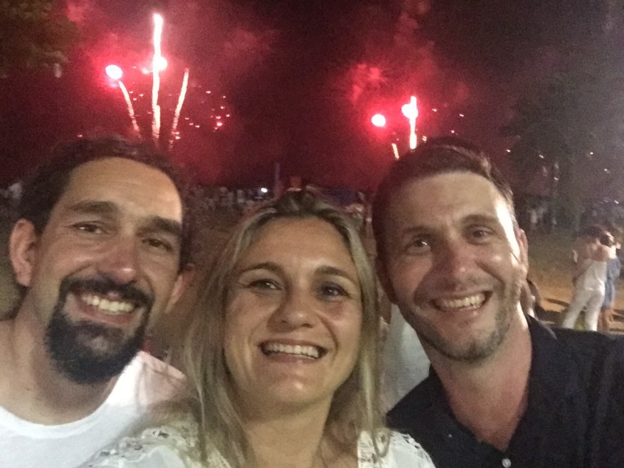 Vimos a queima de fogos na Orla, dessa vez não fomos no meio da areia, ficamos no calçadão mesmo e foi super tranquilo. A queima foi linda e durou 15 minutos. Claro que você vê de tudo na Praia, famílias que montaram barracas, o povo da Umbanda com suas oferendas (salve minha mãe Iemanja), gente com caixa de som alto, aí cabe a você escolher o lugar que mais lhe agrada.