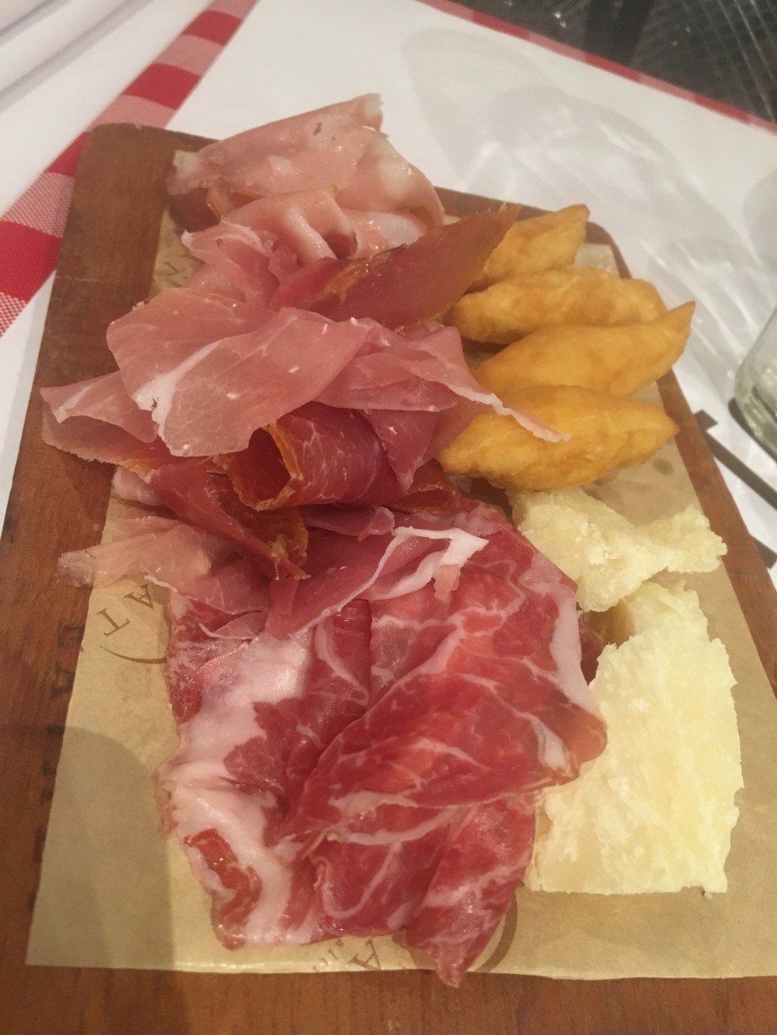 O menu, desenvolvido pelo chef José Barattino apresenta entradas como a Piadina com mortadela, ricota de búfala e rúcula (R$32,00), Rã Frita temperada com sal e pimenta do reino (R$ 28,00) e também uma seleção de embutidos como mortadela, coppa, prosciutto di Parma, Parmigiano Reggiano e o Gnocco frito, típico bolinho frito da cidade de Modena (R$38,00). Entre as entradas as nossas preferidas foram a seleção de embutidos e a Rã Frita, que estava sensacional 🙂