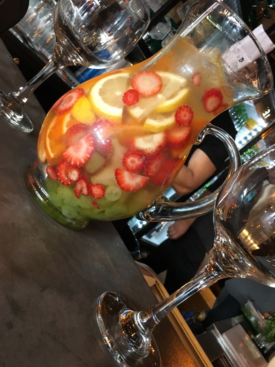 Entre os petiscos, nós experimentamos uma porção de Tiras de Frango Crocante (R$30), que foi sugestão do garçom e realmente estava muito boa. E entre os coquetéis, conferimos um Cleriquot (jarra R$99) e um Moscow Mule, especialidade da casa com gengibre, limão, vodka, e chantilly com Campim Santo, super refrescante.