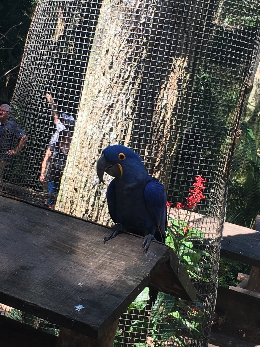 A primeira estação visitada por nós foi a Ilha dos Papagaios com papagaios resgatados do tráfego e que sofreram maus tratos. É possível observas papagaios sem asa, com deformidades e um deles estava até sem o rabo e por isso não conseguia dormir de pé, precisava dormir com a cabeça encostada no poleiro, destoando de todos os demais. A monitora da estação nos explicou que os papagaios ali expostos ainda tinham condições de estar ali, porque muitos deles ficam tão deformados que não são colocados em exposição para preserva-Los e para não chocar demais os visitantes.