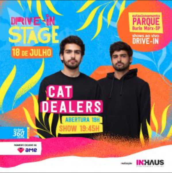 No dia 18 de julho, sábado, às 19h45, o Drive In Stage vai receber Cat Dealers para um show especial, que será realizado no Estacionamento do Parque Burle Marx, em São Paulo. O Drive In Stage, criado pela Agência Inhaus, veio para matar a saudade do entretenimento e shows ao vivo e, para garantir a segurança do público e dos colaboradores, todo o evento seguirá as normas da OMS (Organização Mundial da Saúde).