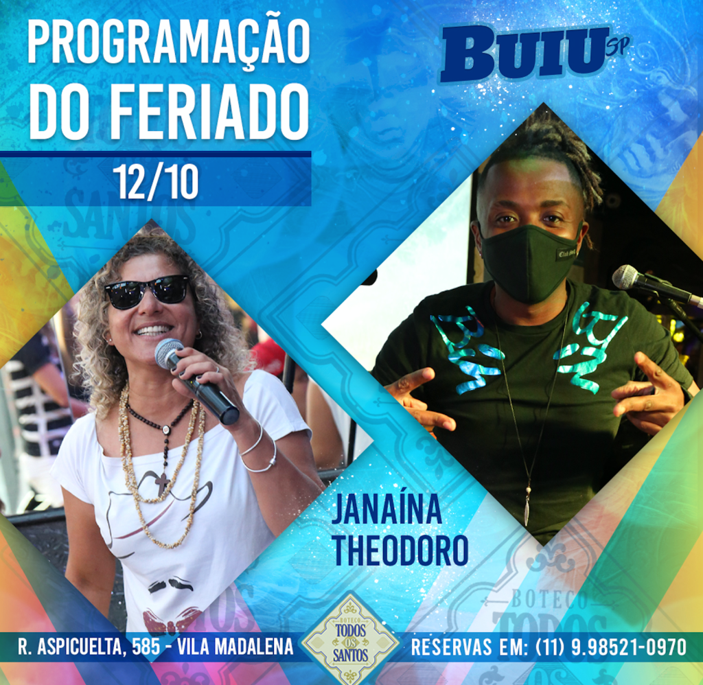 Abrindo o fim de semana e fechando o feriado com chave de ouro, Janaina Theodoro e Buiu SP garantem um sábado (10/10), domingo (11/10) e feriado (12/10) memoráveis.