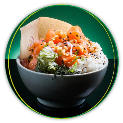 Entre os sabores estão Salmão (gohan, salmão em cubos com cebolinha, manga fatiada, sunomono, molho especial e gergelim – R$26), Salmão Grelhado (gohan, salmão grelhado em pedaços com cebolinha e molho tarê; manga fatiada, sunomono, cream cheese, molho especial e gergelim – R$26), Atum (gohan, atum Bati em cubos com cebolinha, abacaxi fatiado, sunomono, molho especial e gergelim – R$26), Peixe Branco (gohan, peixe branco marinado no limão e pimenta, avocado fatiado, sunomono, molho especial, gergelim – R$26), Camarão Empanado (gohan, camarão rosa empanado em doritos com molho tarê, abacaxi fatiado, sunomono, amêndoas torradas e molho especial – R$28), Camarão Rosa Cozido (gohan, camarão rosa cozido na manteiga de ervas, manga fatiada, sunomono, amêndoas torradas e molho especial – R$28), Salmão Marinado (gohan, barriga de salmão marinado, manga fatiada, sunomono, amêndoas torradas, ovas de Masago, laranja e molho especial – R$30) e Atum com Ovas (gohan, atum Bati em cubos com cebolinha, abacaxi fatiado, sunomono, amêndoas torradas e molho especial – R$30). Todas as opções são acompanhadas de mix de batatas chips.