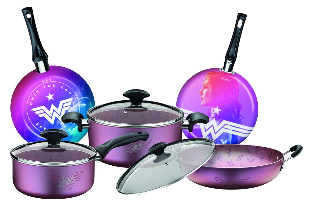 Fãs da super-heroína poderão levar para casa e testar novas receitas com uma coleção exclusiva da Tramontina, desenvolvida em parceria com a divisão de licenciamento de marcas da Warner Bros., inspirada na Mulher-Maravilha. Os produtos licenciados apresentam design clean e moderno, em tons de rosa e lilás. A linha inclui panelas, facas, chaleira, pipoqueira, assadeiras, frigideira, panquequeira, potes e talheres e estará disponível com exclusividade nas lojas próprias e e-commerce da marca a partir do dia 28 de janeiro. Em abril, os novos utensílios chegam também aos demais canais de venda.