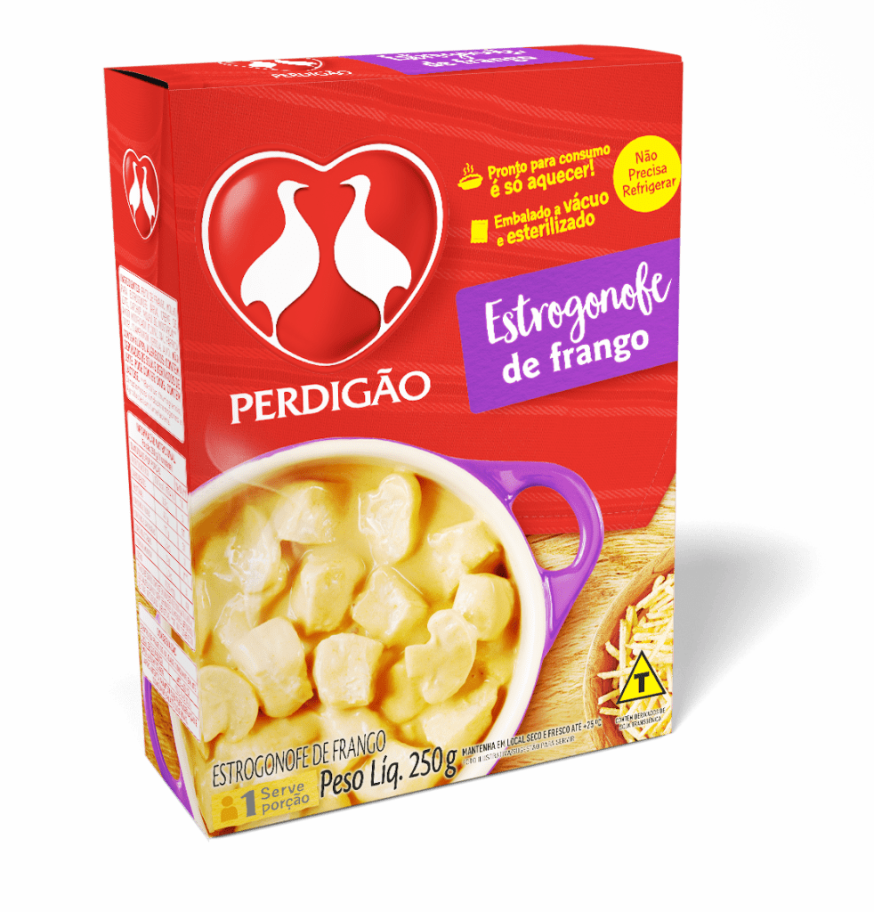 Perdigão, marca presente na mesa do consumidor há 86 anos, inova ao realizar o lançamento de pratos prontos que não precisam de refrigeração. A novidade vai ao encontro do plano Visão 2030, da BRF, companhia detentora da marca, que tem entre seus objetivos liderar o mercado de pratos prontos, que deve chegar a R$ 16 bilhões nos próximos anos. O lançamento está disponível em quatro sabores: estrogonofe de frango, feijoada, coxa e sobrecoxa com mostarda e peito de frango com mandioquinha.