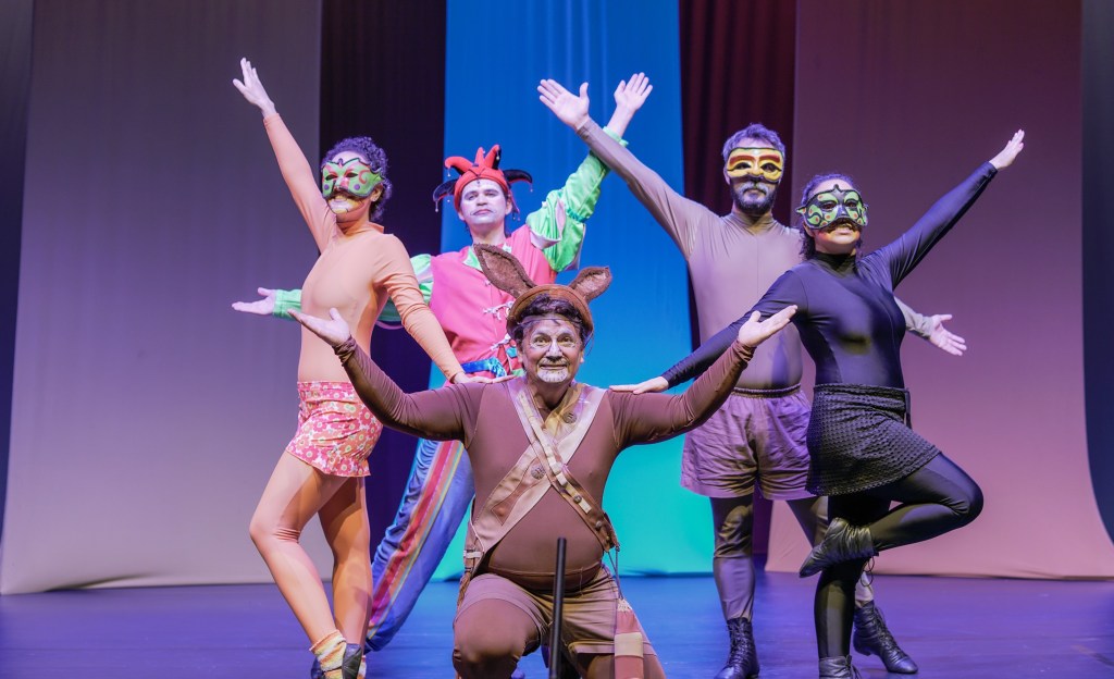 A história de “Os Saltimbancos” consagrou-se como um clássico e suas músicas povoam as emoções de várias gerações. Nesta montagem, há a presença de um Arlequim que interage com os quatro animais do conto, o Jumento, Cachorro, Galinha e Gata, para compor esta linda história, onde os simpáticos bichinhos se tornam cantores, para conduzir este texto que entretém e encanta todas as idades.