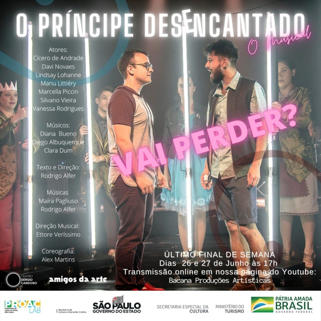 “O Príncipe DesEncantado – O Musical” não é somente um espetáculo para a família, mas para todo “tipo” de família. O musical terá apresentações online e gratuitas durante os finais de semana do mês de junho através do canal do YouTube da Bacana Produções Artísticas.