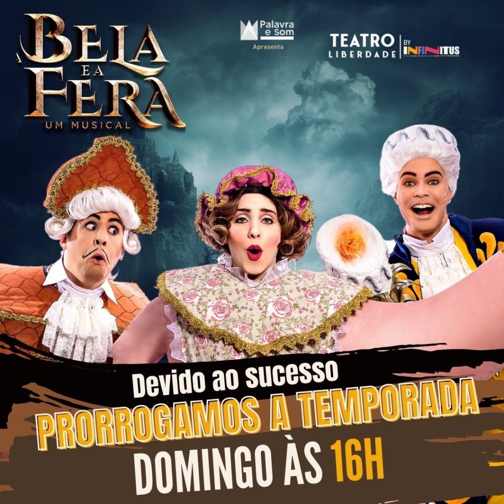 “A Bela e a Fera – Um Musical” é um espetáculo da Palavra e Som, e conta com efeitos especiais, 60 figurinos, sensações em 3D onde a plateia poderá se sentir imersa na história, ilusionismo, cenários grandiosos, além de ser todo cantado ao vivo. Seguindo a linha Family Show o musical encanta a toda família e terá novas sessões, aos domingos, às 16h, no Teatro Liberdade.