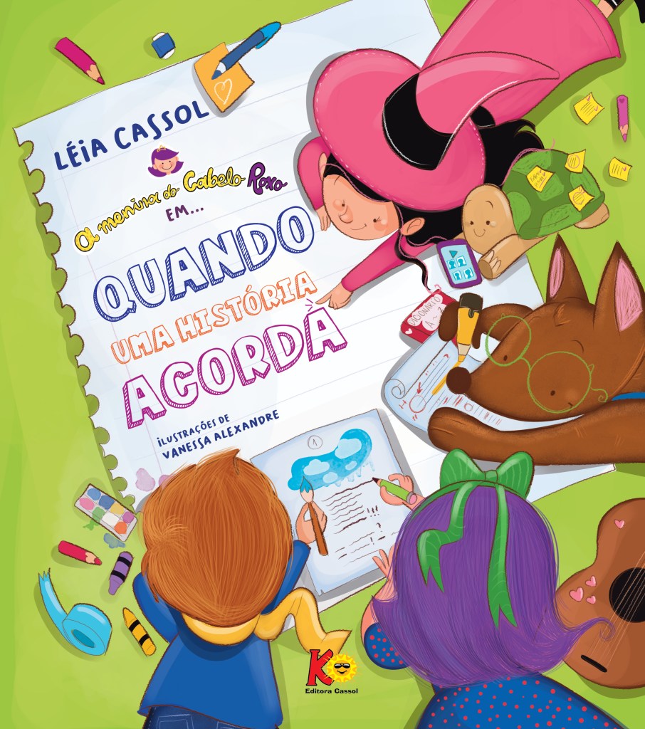 Com a ajuda dos amigos da estante, a Menina do Cabelo Roxo – protagonista que dá nome à coleção infantil da Editora Cassol – cria um livro desde o começo até chegar ao evento de lançamento, com direito a sessão de autógrafos.