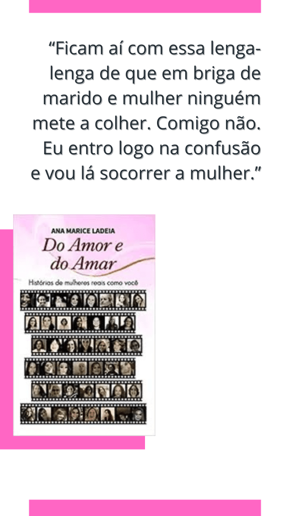 Do Amor e do Amar – Histórias de mulheres reais como você, de Ana Marice Ladeia, está em sua terceira edição e foi publicado pela Editora Scortecci. Tem 152 páginas, está à venda nas livrarias de todo o Brasil e também nas plataformas de e-commerce no formato impresso. E vale ressaltar que a autora já trabalha em um novo projeto, coletando histórias que possam compor o seu novo livro de contos. Fique de olho!