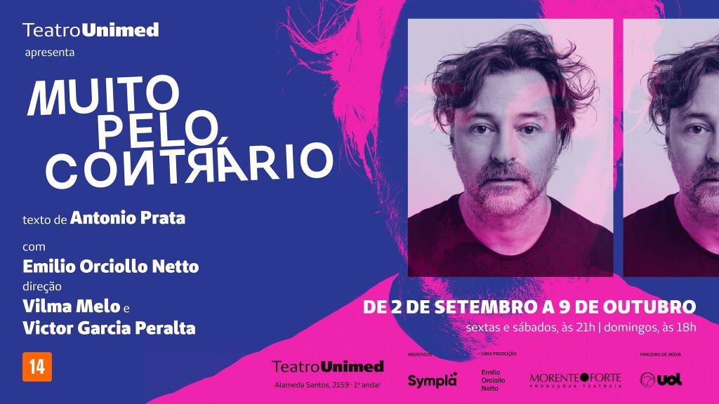 Começam as vendas de ingressos para Muito Pelo Contrário, comédia de Antonio Prata, com Emilio Orciollo Netto, no Teatro Unimed