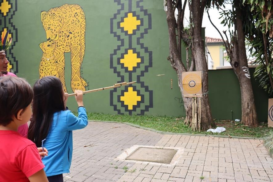 Entre as ações, pensadas para atender tanto o público infantil como o adulto, estão arco e flecha, peteca, contação de histórias tradicionais do povo Guarani e produção de colares e pulseiras com sementes. “A ideia é que se retrate a vivência dentro do território, em que as brincadeiras e os trabalhos acontecem sempre juntos e misturados, enquanto outros fazem rodas, conversas e contam histórias”, comenta Michel.