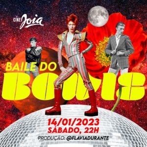 Depois de 3 anos, o Baile do Bowie finalmente volta ao Cine Joia dia 14 de janeiro, sexta-feira, para comemorar os 76 anos de David Bowie. Reunindo DJs, performers, maquiagem e drag queens, a festa produzida anualmente pela produtora Flávia Durante reúne fãs de todo Brasil para celebrar a genialidade do músico britânico e relembrar a diversidade esquecida no rock.