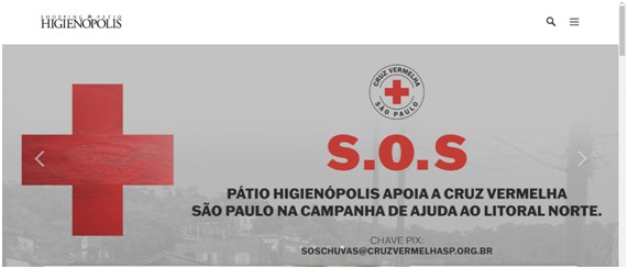 O Shopping Pátio Higienópolis apoia a mobilização da Cruz Vermelha São Paulo, que iniciou campanha de arrecadação de doações para as vítimas das fortes chuvas que atingiram o Litoral Norte do Estado nos últimos dias.