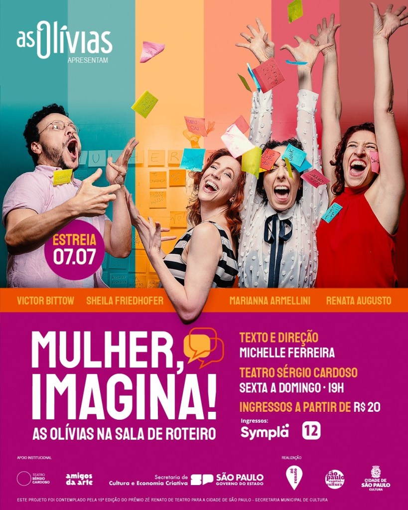 Em comemoração a seus 18 anos de trajetória, o grupo de humor As Olívias reafirma sua parceria com a autora e diretora Michelle Ferreira na comédia Mulher, Imagina!, que tem sua temporada de estreia no Teatro Sérgio Cardoso, entre 7 de julho e 6 de agosto.