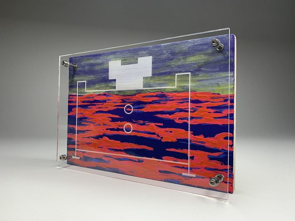 “Os parafusos que ligam a pintura e a gravura em acrílico possuem uma distância significativa. Algo que faz uma alusão ao lapso de tempo entre a construção dos desenhos de 2001 às pinturas de 2021, 2022 e 2023, por isso o título da série: Retroland, que remete a paisagens, territórios, terras e o próprio tempo”, diz.