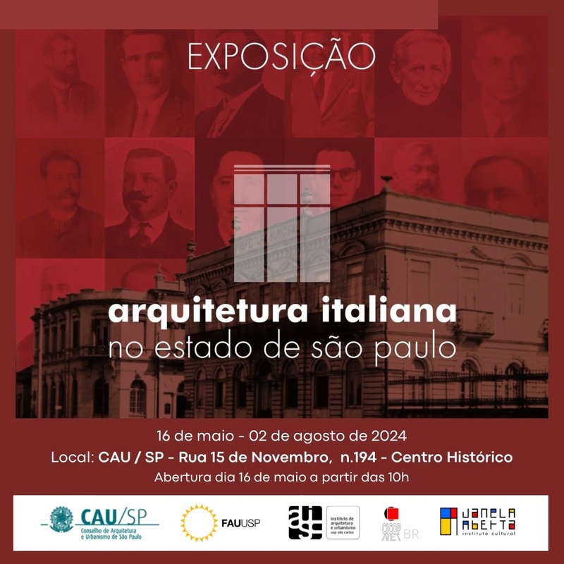 A partir do dia 16/ 5, a sede do Conselho de Arquitetura e Urbanismo de São Paulo (CAU/SP) vai abrigar uma exposição para celebrar este legado: “Arquitetura italiana no estado de São Paulo”, que vai ocupar o saguão do prédio até o dia 2 de agosto.