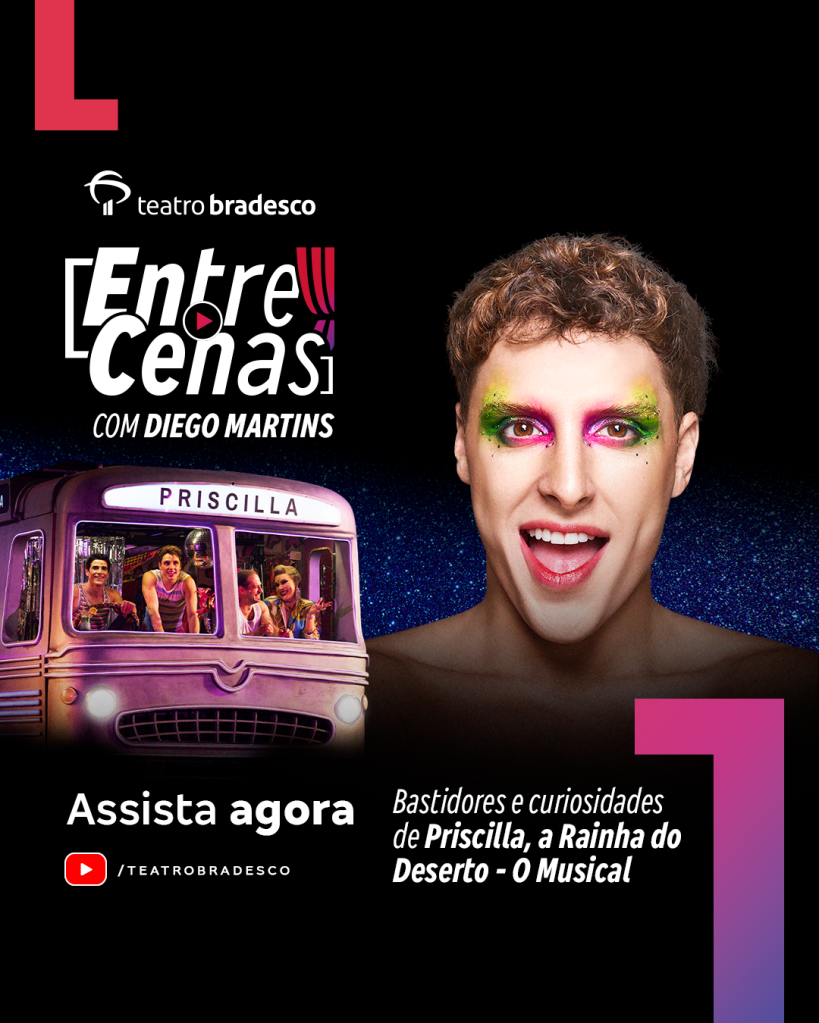 Com o intuito de oferecer ao público acesso a diferentes expressões artísticas e culturais, tanto nacionais quanto internacionais, o Teatro Bradesco apresenta mais um episódio do projeto “Entre Cenas”. Agora, comandado por Diego Martins, ator e drag queen, que interpreta Felícia no musical, a nova edição convida a audiência a explorar o universo multicolorido e da diversidade do espetáculo, com entrevistas exclusivas de diretores, maquiadores, figurinistas e parte do elenco, além dos bastidores e curiosidades.