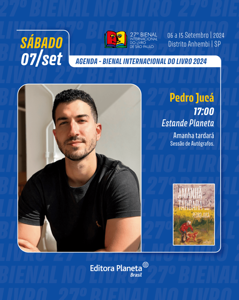 Pedro Jucá lança o romance “Amanhã Tardará” com sessões de autógrafos em São Paulo, na Bienal e na Livraria da Travessa de Pinheiros