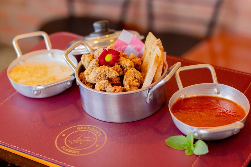 Nome do prato:Pipoca de Filé Mignon com Duo de Molhos