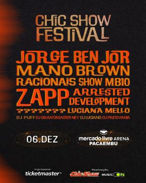 Realizado pela Music On em parceria com a Chic Show, em 2024 o festival reuniu mais de 40 mil pessoas no Allianz Parque, e este ano promete repetir e superar o sucesso, agora em um endereço emblemático como a Arena Mercado Livre – Pacaembu. Jorge Ben Jor, que fez questão de participar, carrega na memória shows no Chic Show que se tornaram parte importante de sua trajetória e retorna para reviver e renovar essa conexão com o público. Mano Brown traz a força de sua voz e seu discurso com um repertório especial de Racionais MC’s, Zapp e Arrested Development representam a conexão internacional com o funk e o rap, enquanto Luciana Mello e uma atração surpresa traduzem a força da mulher na música brasileira com raízes profundas e contemporâneas e os DJs Puff, Grandmaster Ney, Luciano e Preto Faria chancelam a importância e trazem a experiência da época dos bailes em cada set de música. Gastronomia, arte urbana e outras expressões culturais também farão parte do evento, transformando a arena em um grande centro de celebração da música, da diversidade e da resistência.