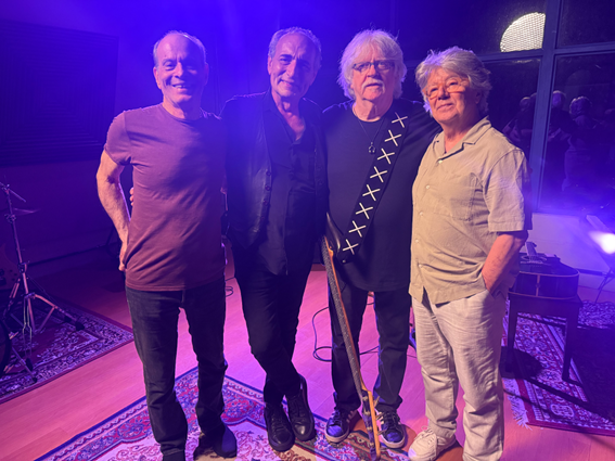 | Ney Matogrosso, Gerson Conrad, Willy Verdaguer (contrabaixista) e Emilio Carrera (pianista). Fotos: Divulgação / Santa Rita Filmes |