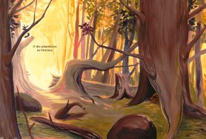 O dia começa na floresta: ao pé de uma árvore, um cão dorme enquanto os animais que ali vivem observam a cena. Curiosos, águia, serpente, marmota, lince, lebre e raposa passam pelo tronco e questionam o que aquele bicho preguiçoso faz ali. A situação enigmática conduz o livro infantil Na floresta, um cachorro, escrito por Yuri de Francco, com ilustrações de Marcelo Tolentino.