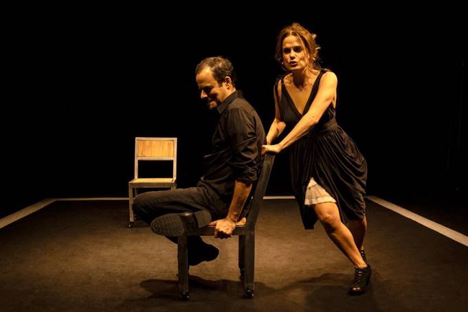 A encenação aposta na força do texto e na condução dos atores. Em cena, Carol Gonzalez e Chico Carvalho sustentam o embate do casal a partir de um espaço reduzido: a cenógrafa Simone Mina cria uma ambientação com duas cadeiras móveis e projeções, evocando um tabuleiro de jogo. Nesse desenho, a luz — assinada pelo próprio Marcelo Lazzaratto — ganha protagonismo ao traduzir os estados emocionais dos personagens, acompanhando as mudanças de humor e intensidade da relação.