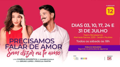 “Preciso Falar de Amor Sem Dizer Eu Te Amo”, uma comédia romântica escrita por Wagner D’Ávila. Interpretada pelos atores Bruno Lopes e Priscila Fantin, a peça conta a história de […]