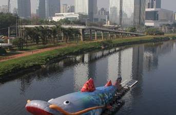 Eduardo Srur navegará escultura monumental no Rio Tietê